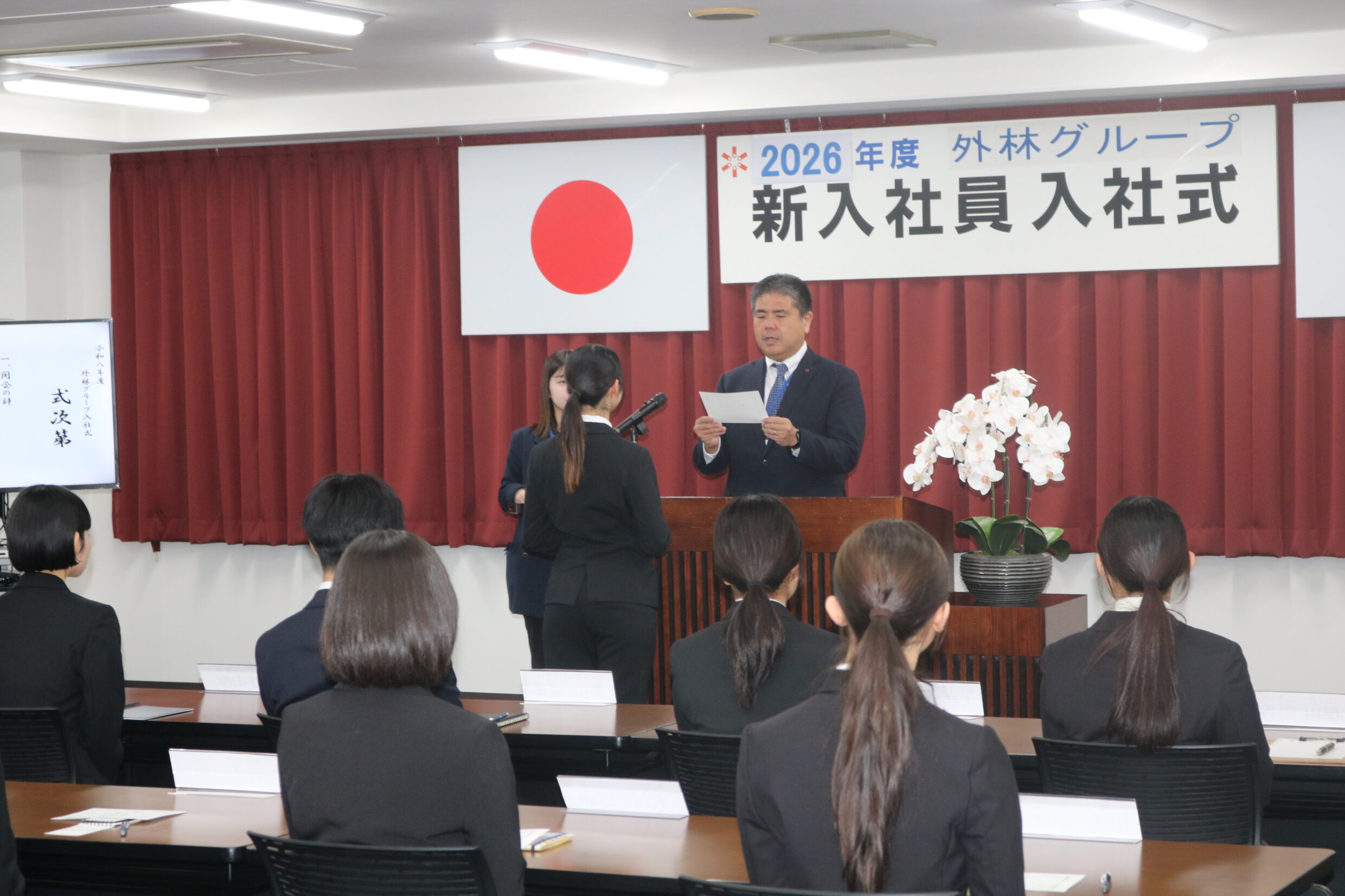 4月1日(水)、2026年度外林グループ新入社員入社式を開催いたしました。